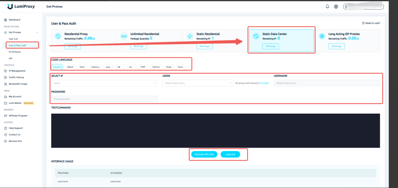 Step 2:Click [Account & Password Verification] to generate an IP link.