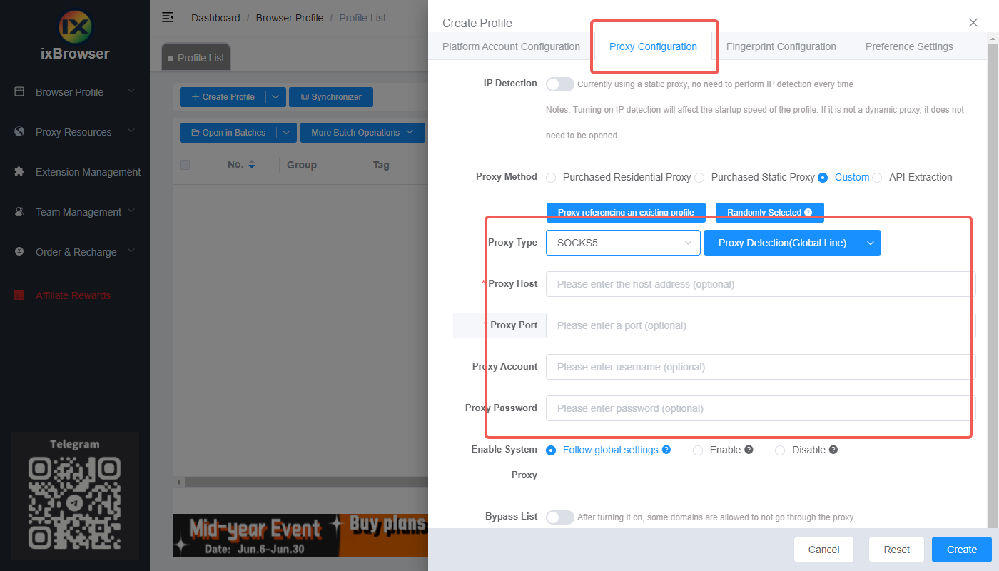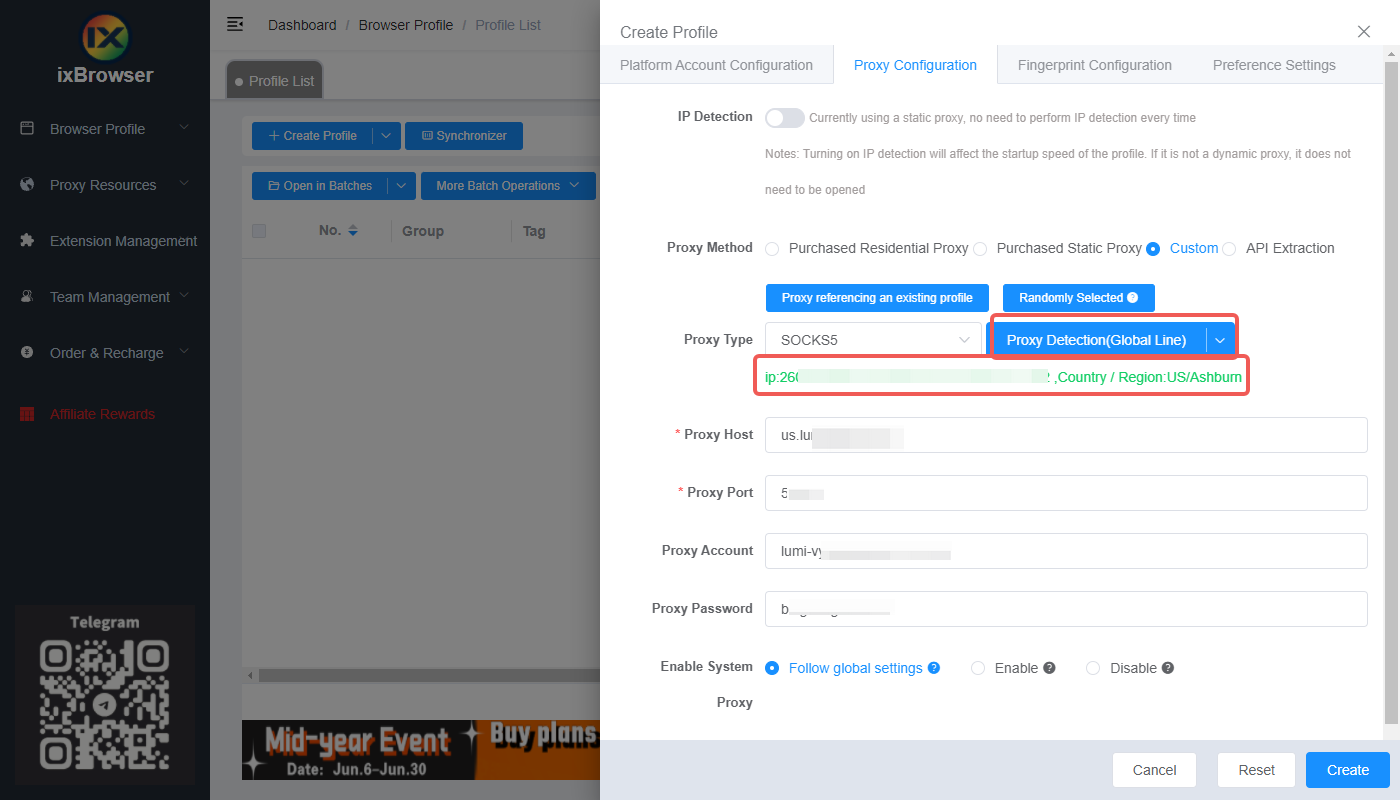 3.Click on "Proxy Detection," then click "Create"